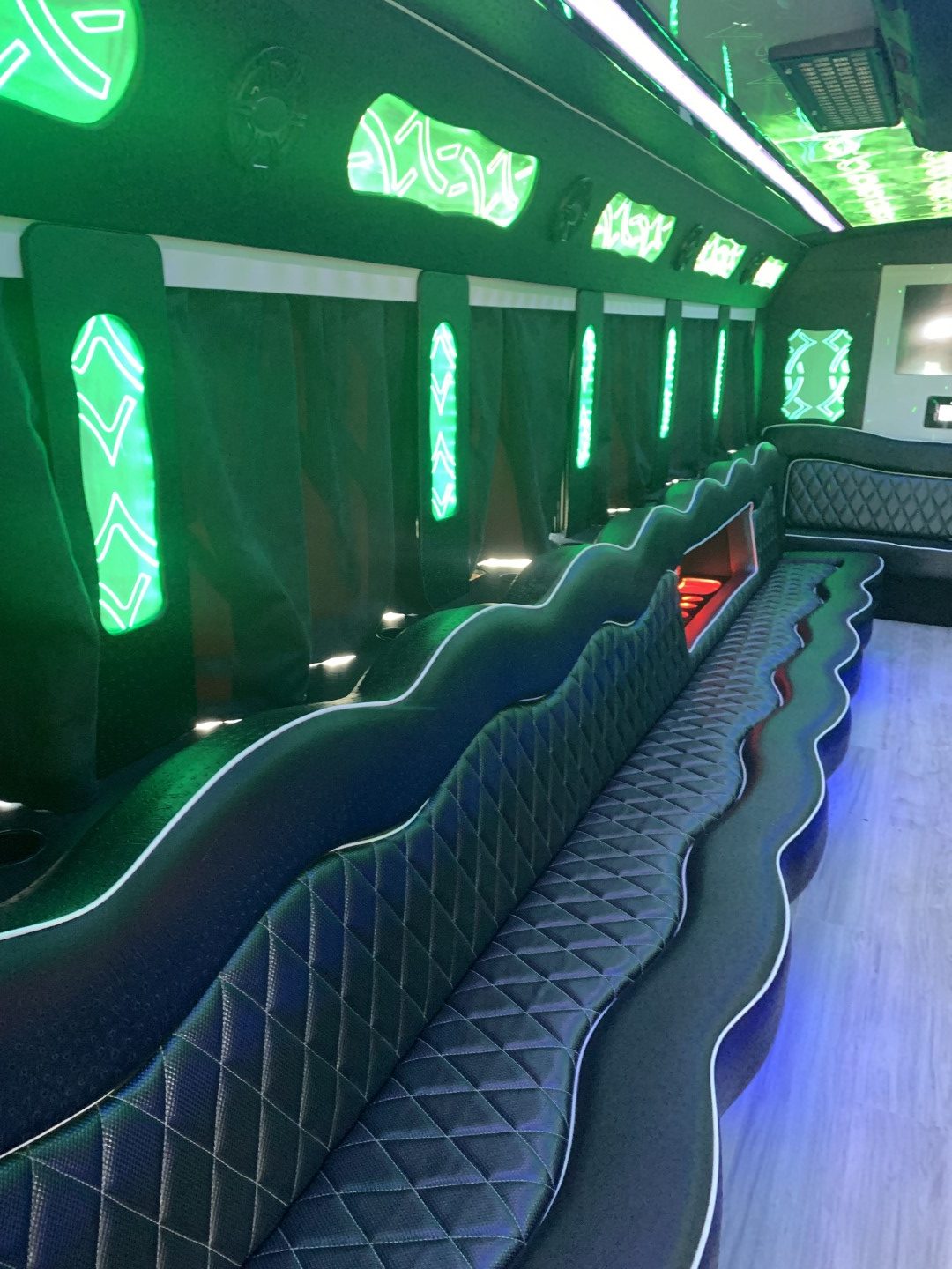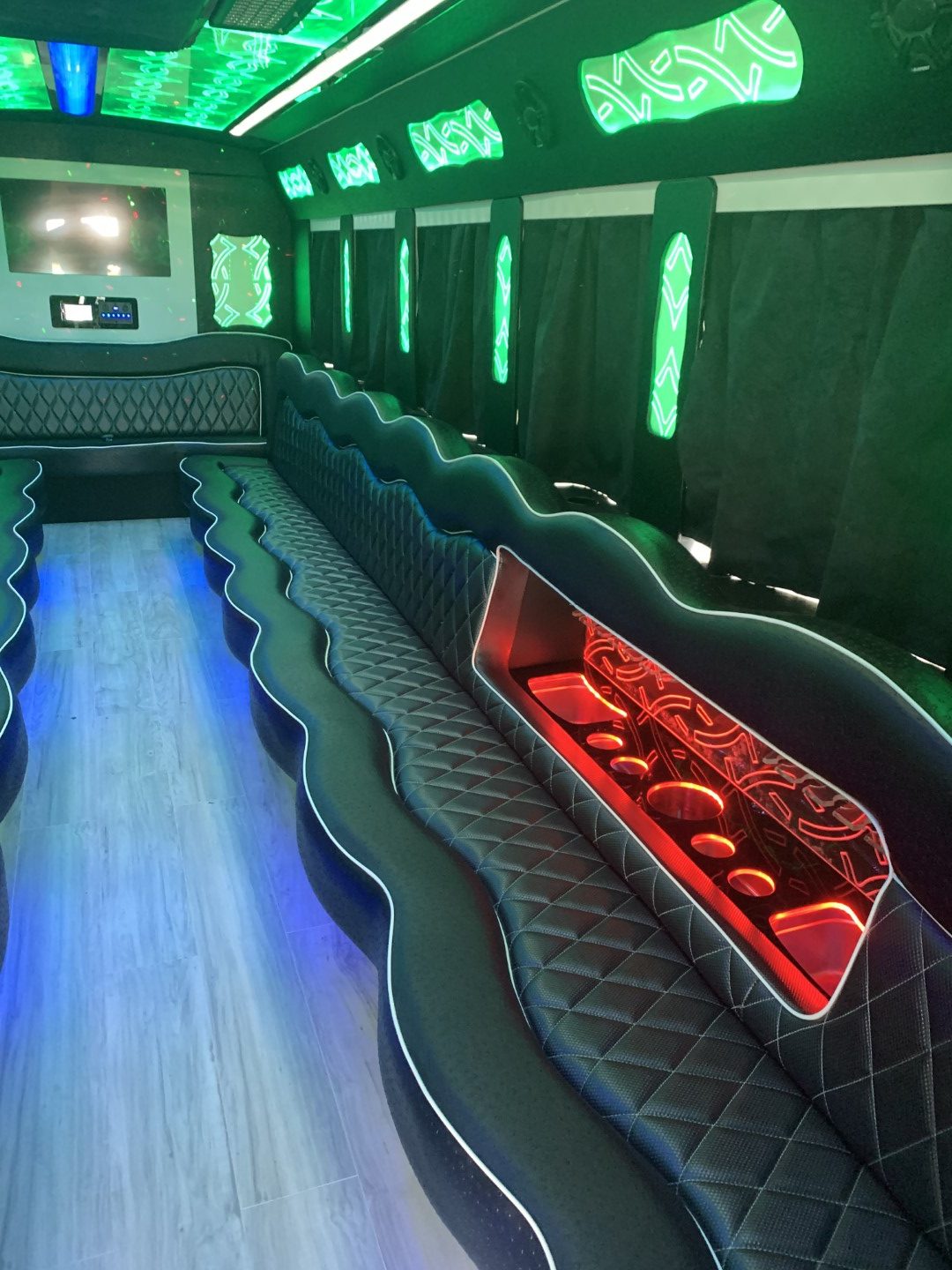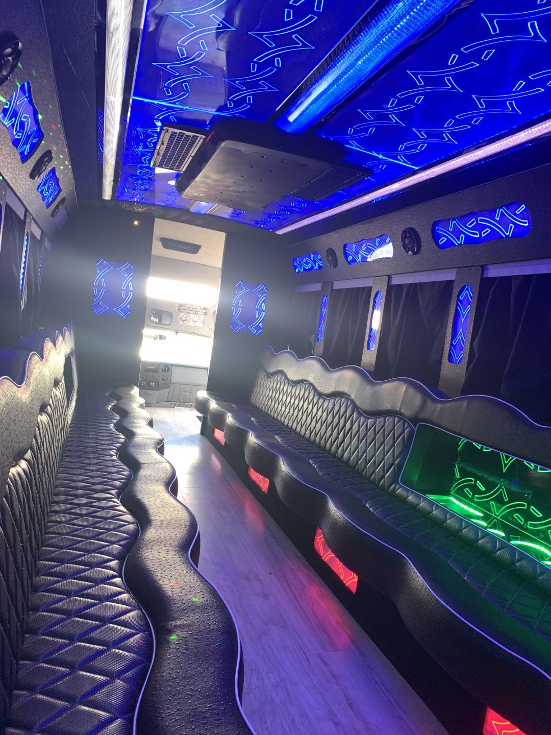 courtesy interior lighting, disco lighting, fiber optic lighting, star lights, upgraded enhanced sound system, sub woofer, plush seating, under seat storage space, high definition flat screen tv, heavy duty air conditioning and heating, please call or text 424-258-5617 for more information